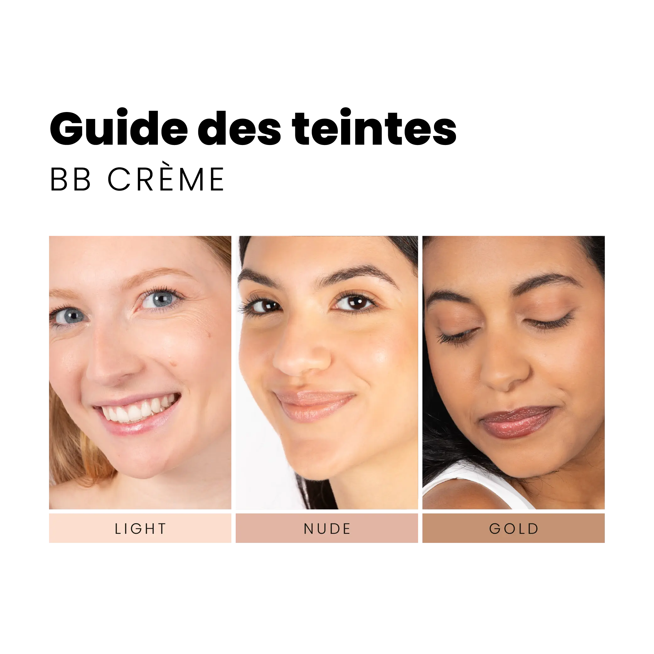 👉 Découvrez notre guide des teintes BB Crème pour trouver facilement la teinte idéale selon votre carnation.