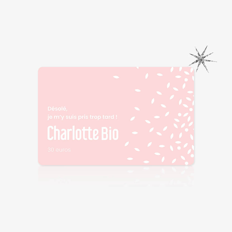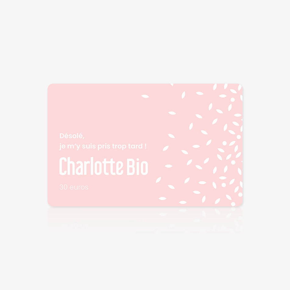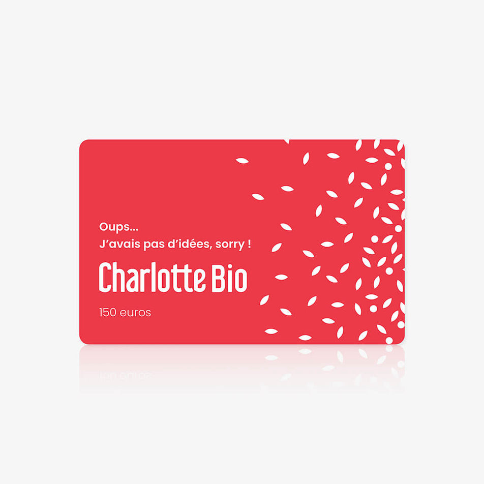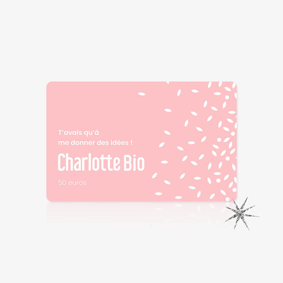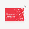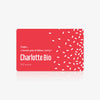 E-gift card geldig voor 1 jaar vanaf de datum van aankoop op al onze online shops www.charlottebio.fr