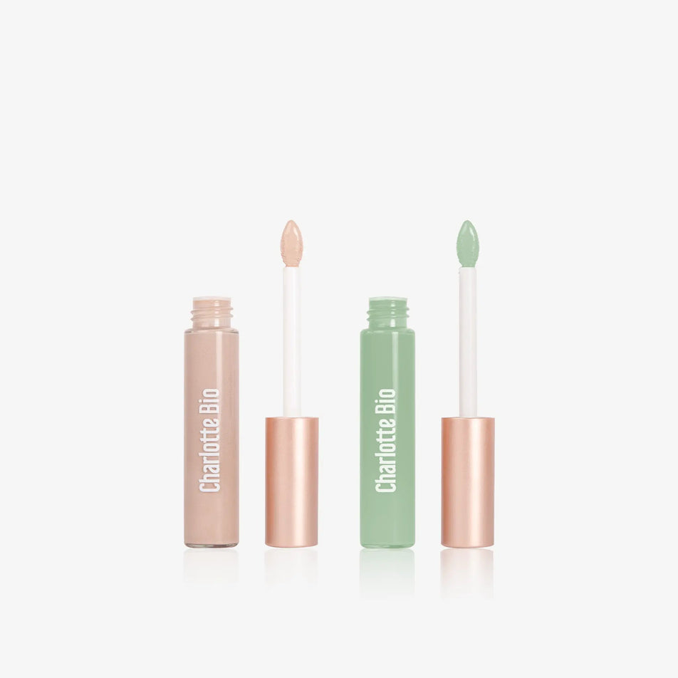 Anti-donkere cirkelcorrector :HELIANTHUS ANNUUS (ZONNEBLOEM) ZAADOLIE, ROSA DAMASCENA BLOEMENWATER*, CAPRYLIC/CAPRIC TRIGLYCERIDE, METHYLHEPTYL PELARGONATE, SILICA, CELLULOSE, GLYCERINE, HEPTYL UNDECYLENATE, PENTYLENE GLYCOL, AQUA (WATER), GEHYDROGENEERDE RICINUSOLIE, POLYGLYCERYL-6 POLYHYDROXYSTEARATE, POLYGLYCERYL-6 POLYRICINOLEAAT, LAUROYLLYSINE, BENZYLALCOHOL, TOCOFEROL, TRIHYDROXYSTEARINE, POLYGLYCERINE-6, DEHYDROAZIJNZUUR, ALBIZIA JULIBRISSIN SCHORSEXTRACT, NATRIUMHYALURONAAT, NATRIUMBENZOAAT, SIGESBECKIA ORIENTALIS EXTRACT, ASCORBYLPALMITAAT KAN (±) BEVATTEN: CI 77891 (TITANIUM DIOXIDE), CI 77019 (MICA), CI 77491 (RED IRON OXIDE), CI 77492 (YELLOW IRON OXIDE), CI 77499 (BLACK IRON OXIDE)* ingrediënten van biologische landbouw. **Verwerkt uit biologische ingrediënten.Anti-roodheid corrector :HELIANTHUS ANNUUS (ZONNEBLOEM) ZAADOLIE, ROSA DAMASCENA BLOEMENWATER*, CAPRYLIC/CAPRIC TRIGLYCERIDE, METHYLHEPTYL PELARGONATE, SILICA, CELLULOSE, GLYCERINE, HEPTYL UNDECYLENATE, PENTYLENE GLYCOL, AQUA (WATER), GEHYDROGENEERDE RICINUSOLIE, POLYGLYCERYL-6 POLYHYDROXYSTEARATE, POLYGLYCERYL-6 POLYRICINOLEAAT, LAUROYLLYSINE, BENZYLALCOHOL, TOCOFEROL, TRIHYDROXYSTEARINE, POLYGLYCERINE-6, DEHYDROAZIJNZUUR, ALBIZIA JULIBRISSIN SCHORSEXTRACT, NATRIUMHYALURONAAT, NATRIUMBENZOAAT, SIGESBECKIA ORIENTALIS EXTRACT, ASCORBYLPALMITAAT KAN (±) BEVATTEN: CI 77891 (TITAANDIOXIDE), CI 77288 (CHROOMOXIDEN GROEN)
