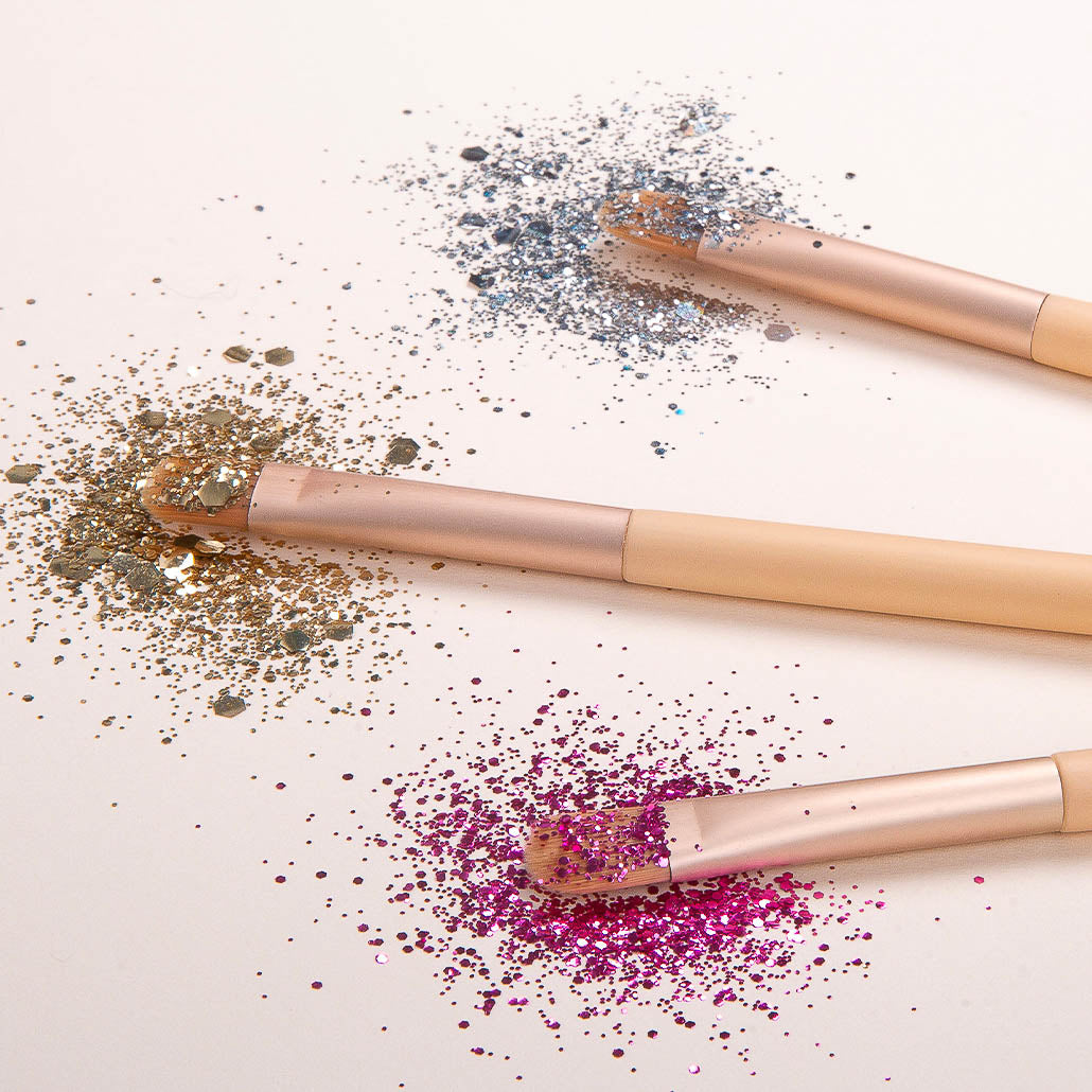Gebruik eerst het borsteltje om onze magische balsem aan te brengen op het gebied dat je wilt bedekken met make-up. Pak vervolgens met het penseel wat glitter op en breng dit aan op de zone van je gezicht of lichaam die bedekt is met de magische balsem. Breng aan op het gezicht en/of lichaam - het is magisch!