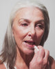 Voor een gelijkmatige applicatie van je langhoudende organische lippenstift, begin je met het tekenen van de cupidoboog in de vorm van een kruis. Volg dan de vorm van je bovenlip en herhaal dit op je onderlip.