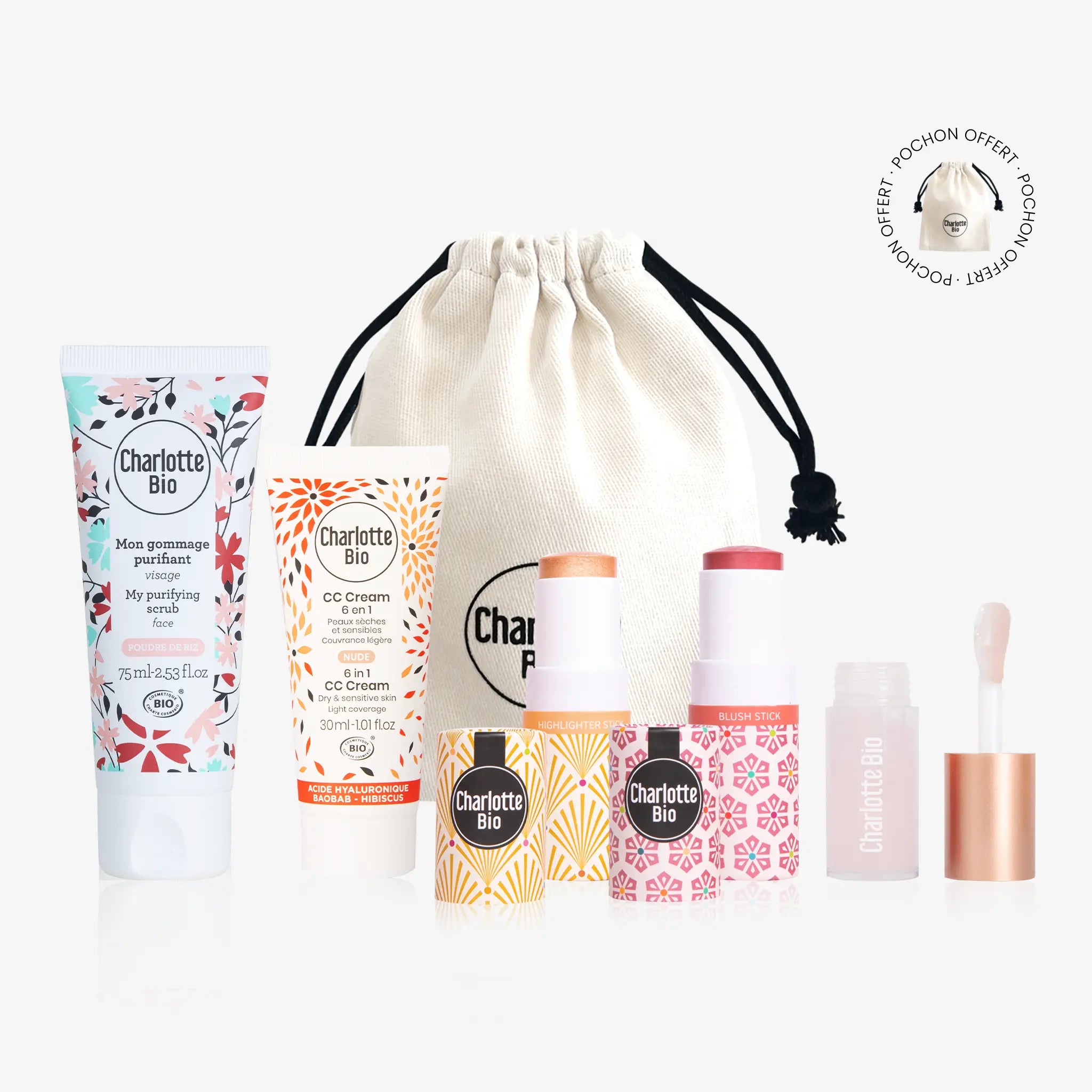 CC Crèmes : AQUA (WATER / EAU), GLYCERINE**, CI 77891 (TITANIUMDIOXIDE), ROSA DAMASCENA BLOEMENWATER*, CAPRYLIC/CAPRIC TRIGLYCERIDE, HELIANTHUS ANNUUS (ZONNEBLOEM) ZAADOLIE*, PRUNUS ARMENIACA (ABRIKOOS) PITOLIE*, POLYGLYCERYL-6 STEARAAT, SIMMONDSIA CHINENSIS (JOJOBA) ZAADOLIE*, BUTYROSPERMUM PARKII (SHEA) BOTER*, CETYL ALCOHOL, PRUNUS AMYGDALUS DULCIS (ZOETE AMANDEL)OLIE*, BENZYLALCOHOL, MICROKRISTALLIJNE CELLULOSE, CI 77492 (IJZEROXIDEN), NATRIUMHYALURONAAT, POLYGLYCERYL-6 BEHENAAT, CI 77491 (IJZEROXIDEN), TOCOFEROL, CELLULOSEGOM, DEHYDROAZIJNZUUR, NATRIUMCITRAAT, XANTHAANGOM, MELKZUUR, ADANSONIA DIGITATA FRUITEXTRACT, HIBISCUS SABDARIFFA BLOEMEXTRACT