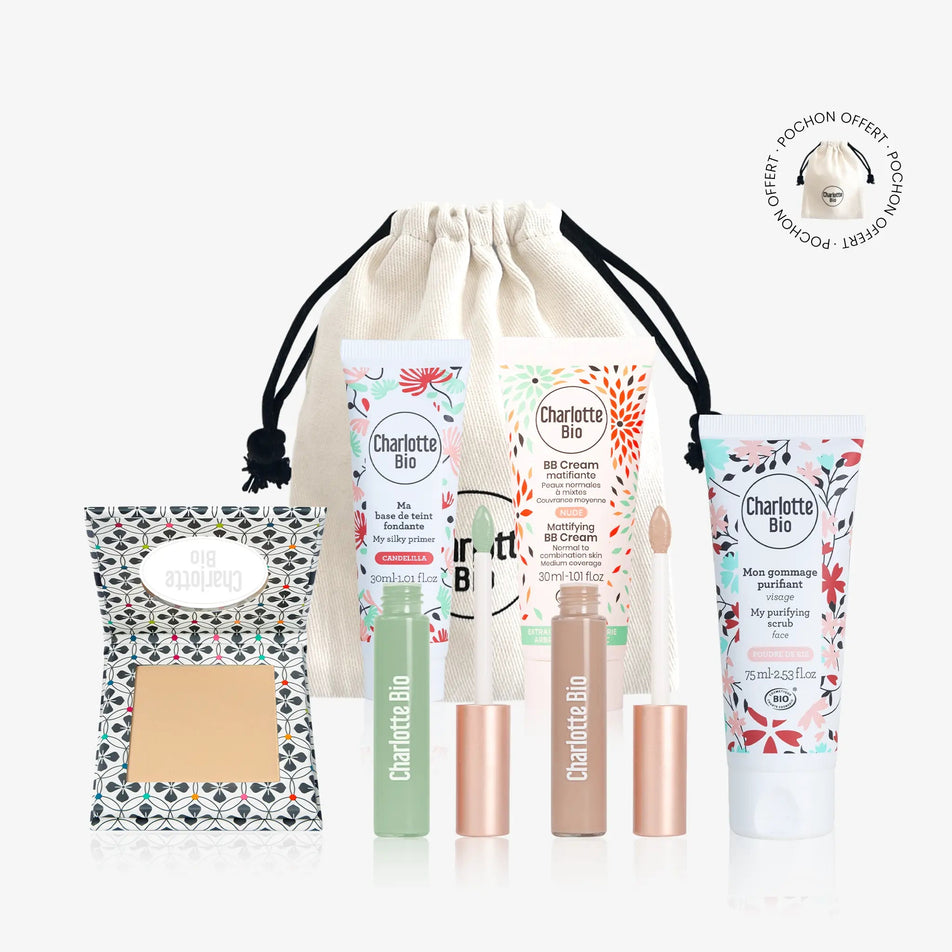 Deze set bevat een BB Cream, een foundation, een make-up remover gel, een anti-roodheid corrector en een compact poeder.