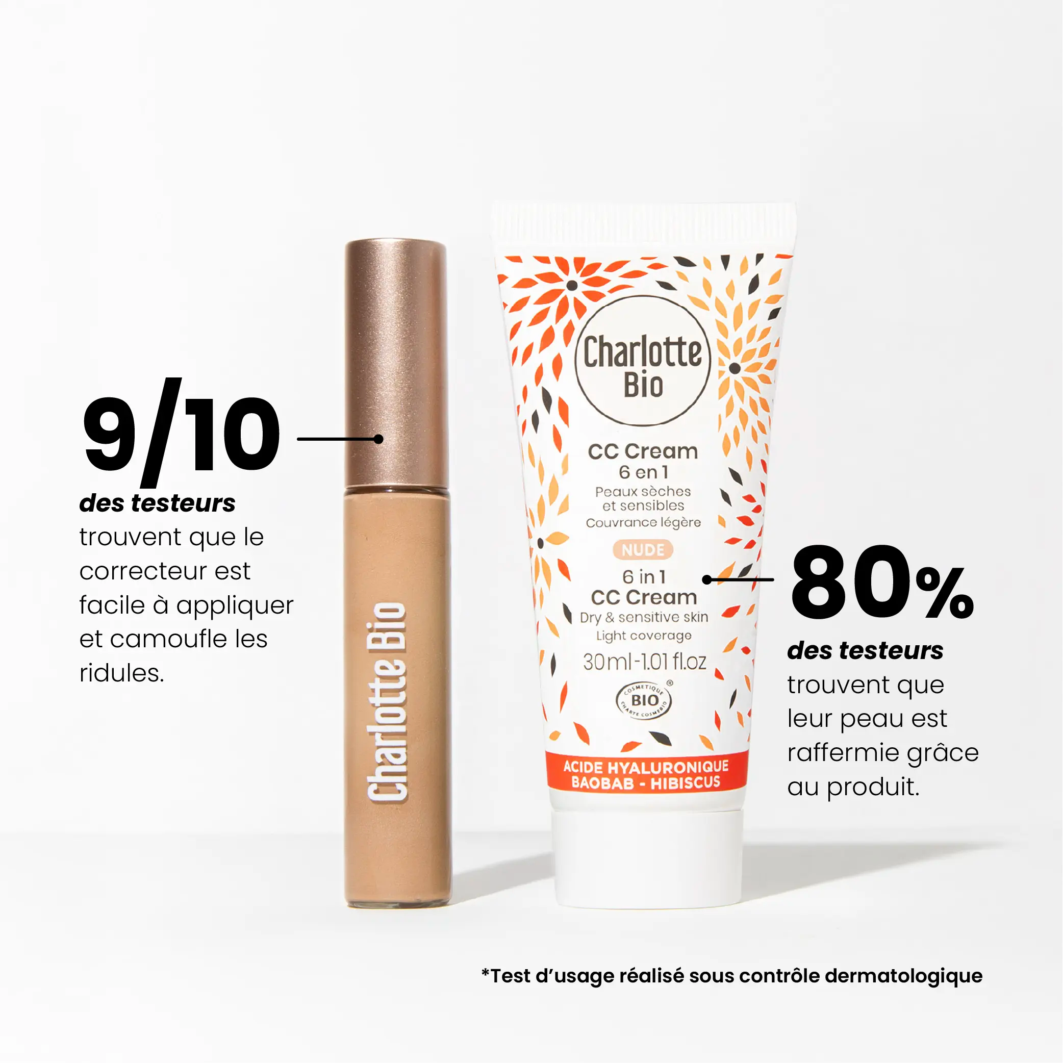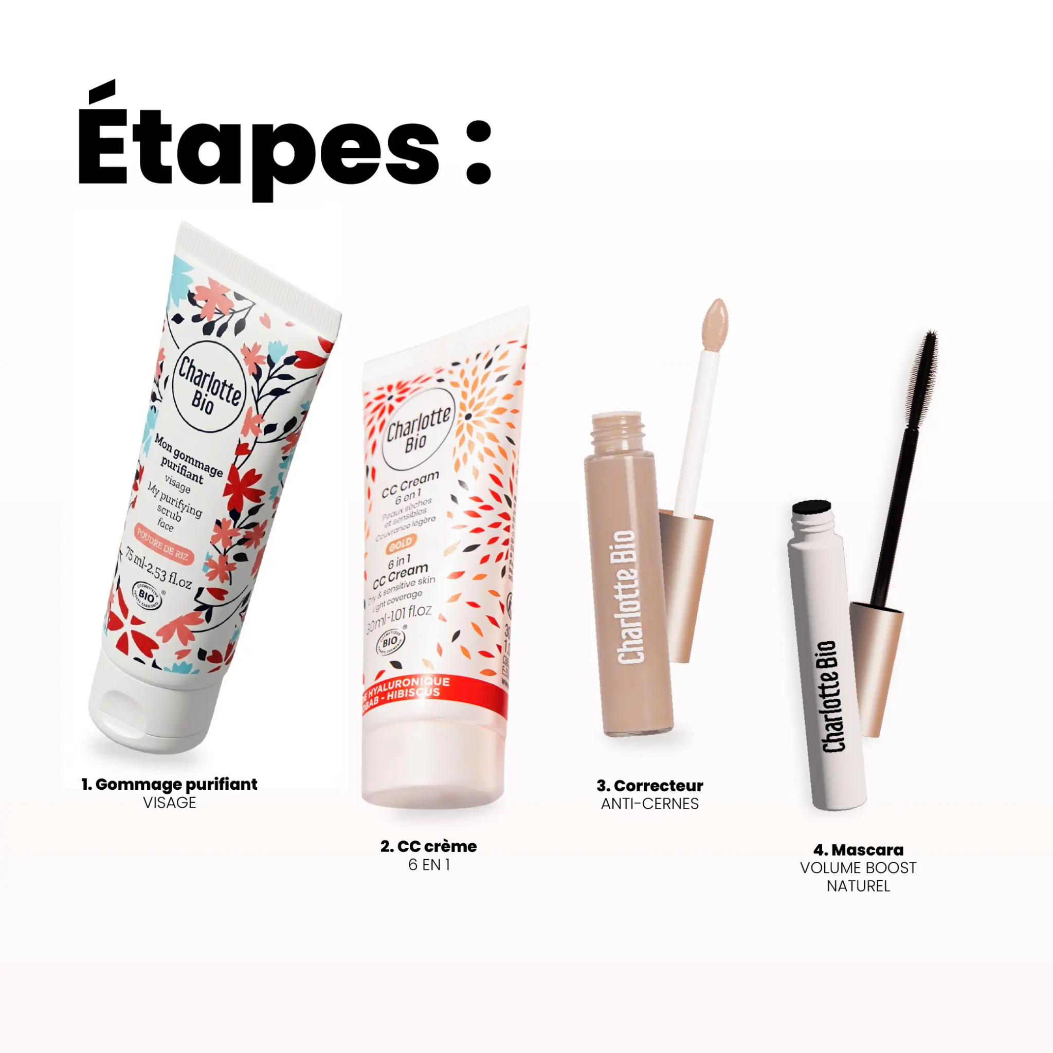 Breng vervolgens de Hydraterende CC Crème aan over het hele gezicht en de hals. Deze behandeling egaliseert de teint, laat de huid stralen en biedt een lichte dekking terwijl de huid wordt gehydrateerd.