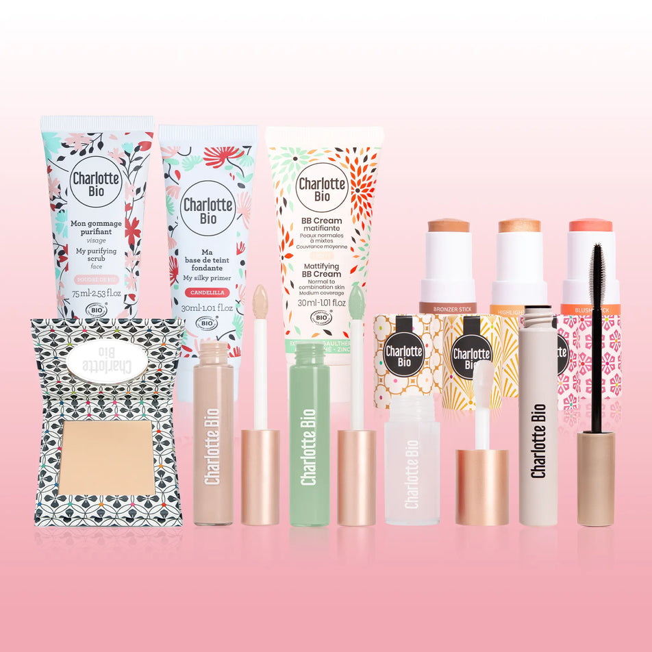 BB Cream : INGREDIËNTEN : AQUA (WATER / EAU), GLYCERINE**, CI 77891 (TITANIUMDIOXIDE), ROSA DAMASCENA BLOEMENWATER*, CAPRYLIC/CAPRIC TRIGLYCERIDE, HELIANTHUS ANNUUS (ZONNEBLOEM) ZAADOLIE, PRUNUS ARMENIACA (ABRIKOOS) PITOLIE*, POLYGLYCERYL-6 STEARAAT, SIMMONDSIA CHINENSIS (JOJOBA)ZAADOLIE*, BUTYROSPERMUM PARKII (SHEA)BOTER*, CETYLALCOHOL, KAOLIEN, PRUNUS AMYGDALUS DULCIS (ZOETE AMANDEL)OLIE*, GAULTHERIA PROCUMBENS (WINTERGROEN) BLAD EXTRACT, MICA, ZINK PCA, CI 77492 (IJZEROXIDEN), BENZYL ALCOHOL, MICROKRISTALLIJNE CELLULOSE, CI 77491 (IJZEROXIDEN), NATRIUMHYDROXIDE, POLYGLYCERYL-6 BEHENAAT, CI 77499 (IJZEROXIDEN), TOCOFEROL, CELLULOSEGOM, NATRIUMCITRAAT, XANTHAANGOM, DEHYDROAZIJNZUUR, CITROENZUUR, MELALEUCA ALTERNIFOLIA (TEA TREE) BLADEXTRACT, NATRIUMBENZOAAT, KALIUMSORBAAT